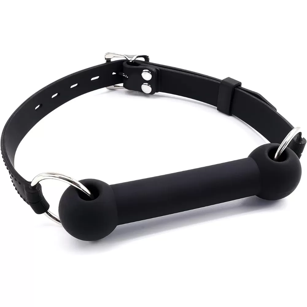 Deri Kemerli Yumuşak Silikon Siyah Isırma Barı Ağız Tıkacı - Bondage Mouth Bite Bar Gag