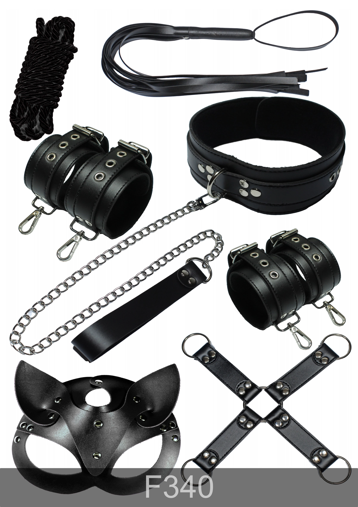 Exotikiss 7’li Fantazi Kelepçe ve Aksesuar Seti – Siyah BDSM Oyun Seti