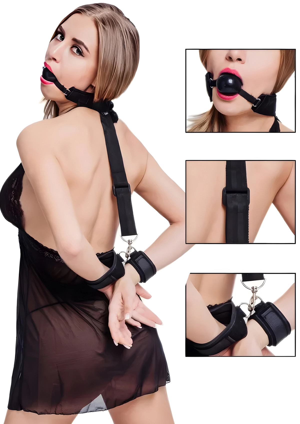 Dayanıklı metal bağlantı halkaları ve sağlam kayış sistemi sayesinde güvenli kullanım sunar. Boyun, ağız ve el kelepçelerinin harness yapısıyla birleşmesi, oyun sırasında kontrolün tamamen sizde olmasını sağlar. Ayarlanabilir yapısı sayesinde farklı vücut tiplerine kolayca uyum sağlar.