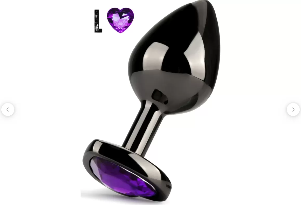 Parlak siyah kaplamalı paslanmaz çelik yapısı, hijyenik ve uzun ömürlü kullanım sağlarken, kalp şeklindeki mor taş detayı ürüne lüks bir dokunuş katıyor. Büyük boy formu, anal genişlemeye alışmış kullanıcılar için derinlemesine bir tatmin sunar.