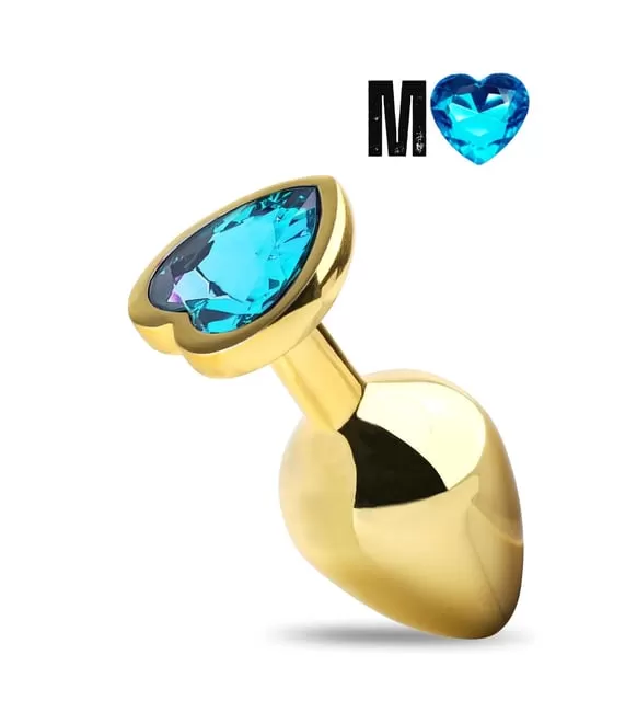 Paslanmaz Çelik Gold Mavi Renkli Kalp Taşlı Anal Plug – Orta Boy