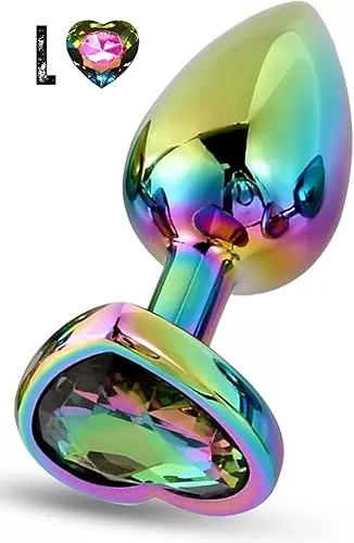 Paslanmaz Çelik Rainbow Renkli Kalpli Taşlı Anal Plug – Büyük Boy