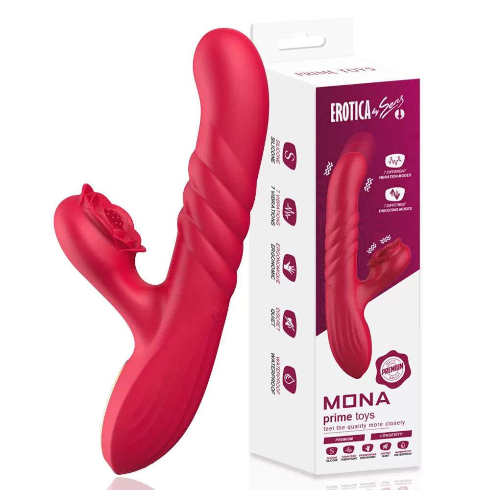 PRIME TOYS Mona Şarjlı İleri Geri Hareketli Titreşimli 2 in 1 Klitoris G Nokta Uyarıcı Vibratör