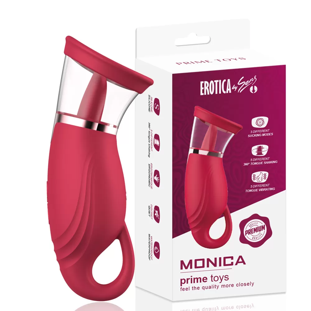 PRIME TOYS Monica Şarjlı Tutma Aparatlı Emiş Titreşim Dil Yalama 3 in 1 Klitoris Uyarıcı Vibratör