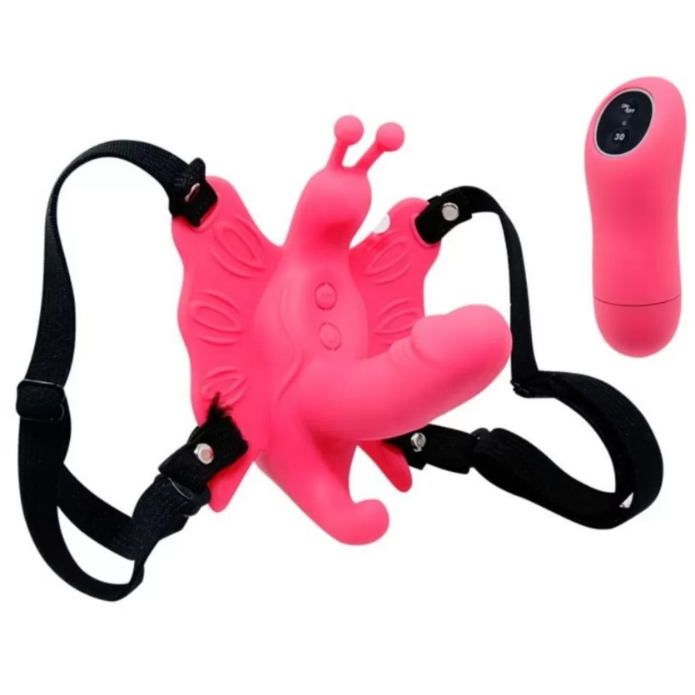 Kelebek şeklinde klitoral stimülatör ve mini penis içeren ayarlanabilir kayış, kablosuz uzaktan kumandayla kontrol edilen ve silikondan yapılmış 30 titreşim modu. Elleriniz serbestken zevkin tadını çıkarın.